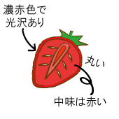 親は「章姫」と「さちのか」。ほっぺが落ちる美味しさで、大きい3Lサイズ(1粒30g以上)も採れる。男性に人気有。